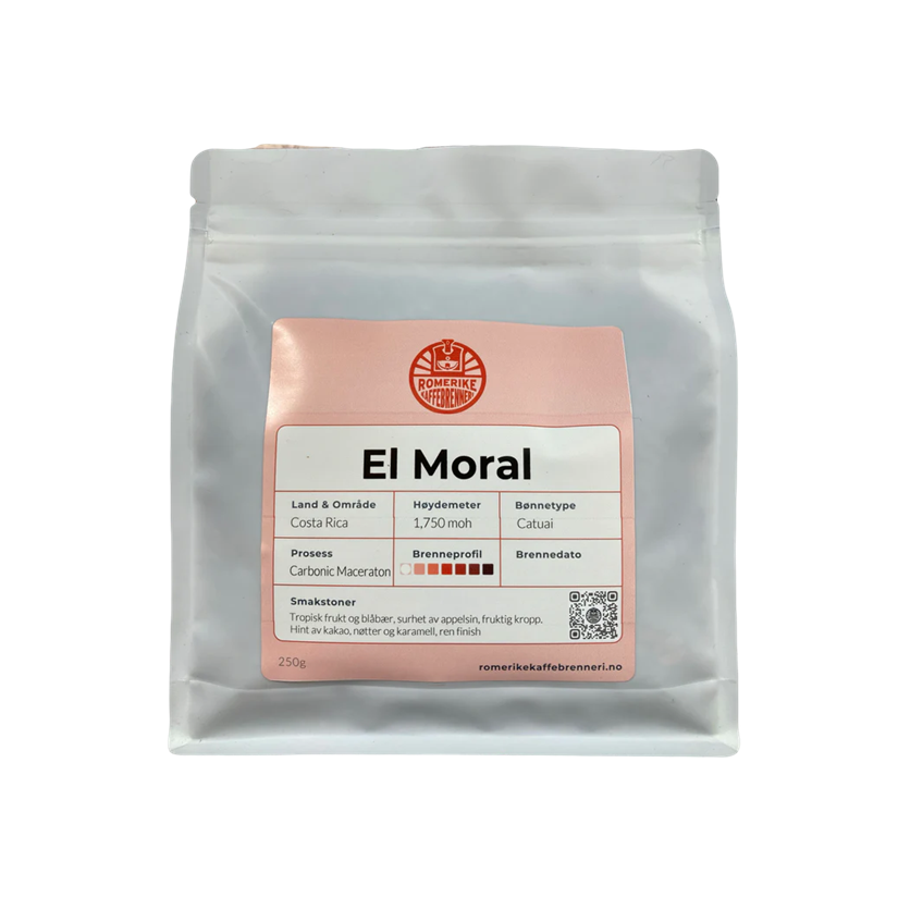 Natural Anaerobic El Moral kommer fra Costa Rica, og viser Don Alexis Coffee sin engasjement for innovasjon innen kaffebehandling. Denne kaffen gjennomgår en anaerob gjæringsprosess, som beriker dens smaksprofil med unike egenskaper. Forvent å bli henrykt over noter av moden frukt, florale hint og en fløyelsmyk munnfølelse. Opplev essensen av costaricansk kaffe og kaffehåndverk fra Romerike Kaffebrenneri med hver overbærende slurk av dette eksepsjonelle brygget.